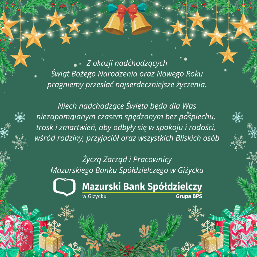 Mazurski Bank Spółdzielczy w Giżycku zarejestrowany jest w Sądzie Rejonowym w Olsztynie, VIII Wydział Gospodarczy Krajowego Rejestru Sądowego pod numerem KRS: 0000036787 NIP: 845-000-02-28. Mazurski Bank Spółdzielczy w Giżycku ul. Gen. Józefa Zajączka 1 11-500 Giżycko tel. tel.: +48 87 429 62 00 e-mail: Ten adres pocztowy jest chroniony przed spamowaniem. Aby go zobaczyć, konieczne jest włączenie w przeglądarce obsługi JavaScript. adres do e-Doręczeń: PL-22774-10025-FFJHV-18